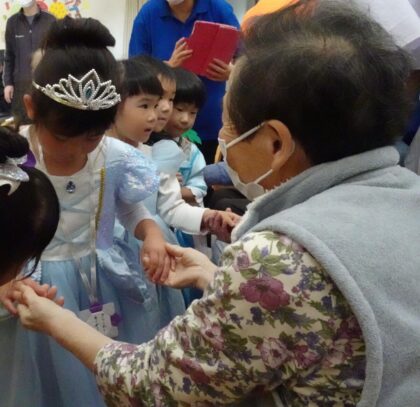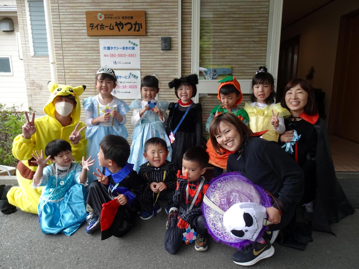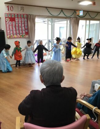10/31にグループホームやつかガーデンとデイホームやつかにてハロウィンの仮装をした、白鳩保育園の園児達がお遊戯を披露してくれました。