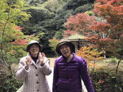 グループホーム相浜ガーデン 紅葉見学に行きました。 公開日: 2025年11月28日|カテゴリー: 日々の様子, グループホーム相浜ガーデン 小松寺まで紅葉見学のドライブに行ってきました。 それぞれに景色を楽しんでいらっしゃいました。 綺麗な景色で自然にピース 今年の紅葉景色と 場所によって彩りも変わってました 近くで見るとより鮮やかな色でした 車いすで散策しました 紅葉を見ながら一休み 紅葉を見た後は手作りプリンアラモード お部屋にも紅葉を飾りました。