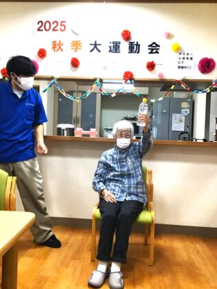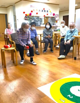 ダンベルや足踏みの回数やボッチャゲームの得点を皆様で競い合いました。