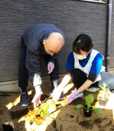 ミニ白菜、縄文ねぎ、春菊、菜花、青菜の苗を植えました。